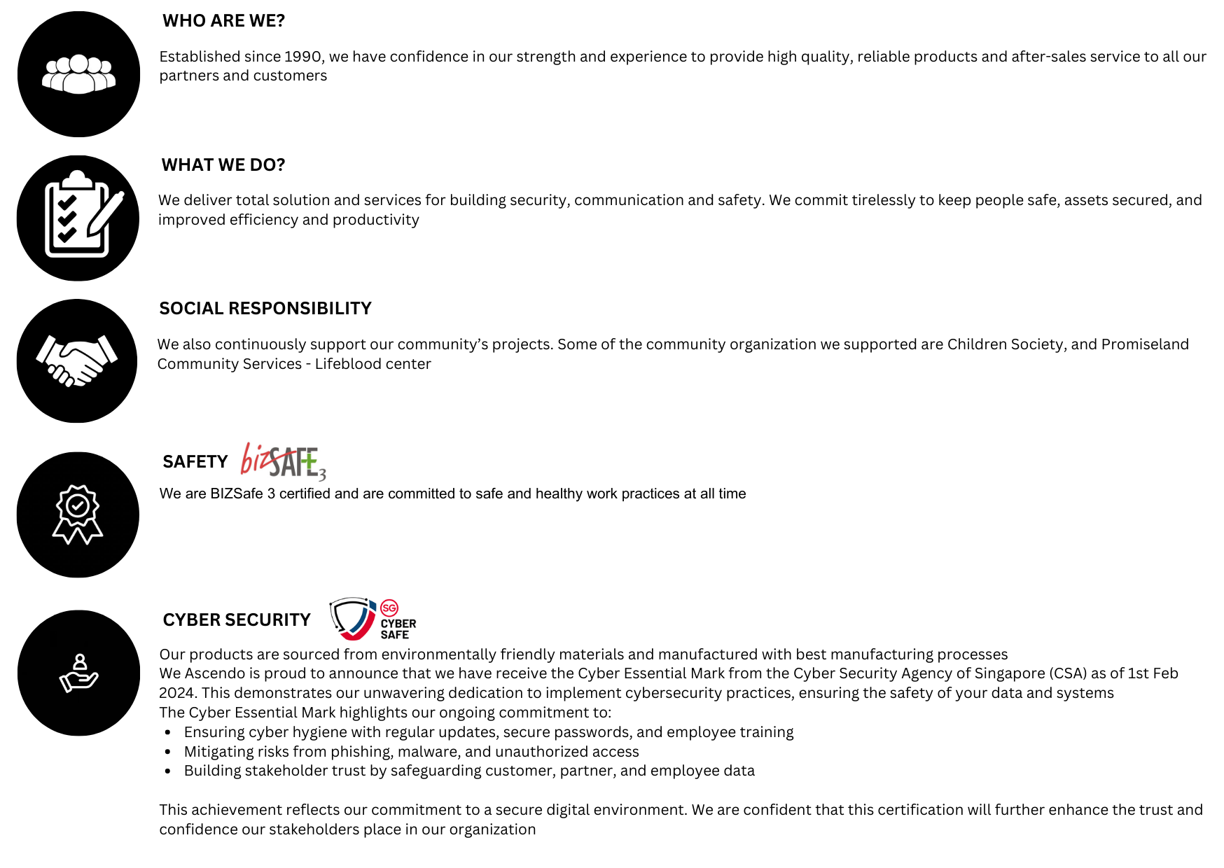 Ascendo pride itself into providing value added services. We do not just supply system, we assist you in designing your required system and follow you up to you commissioning stage.